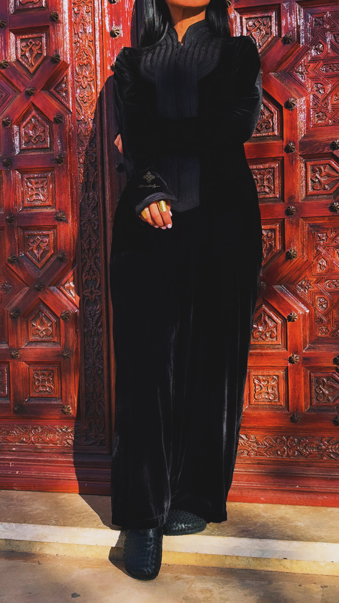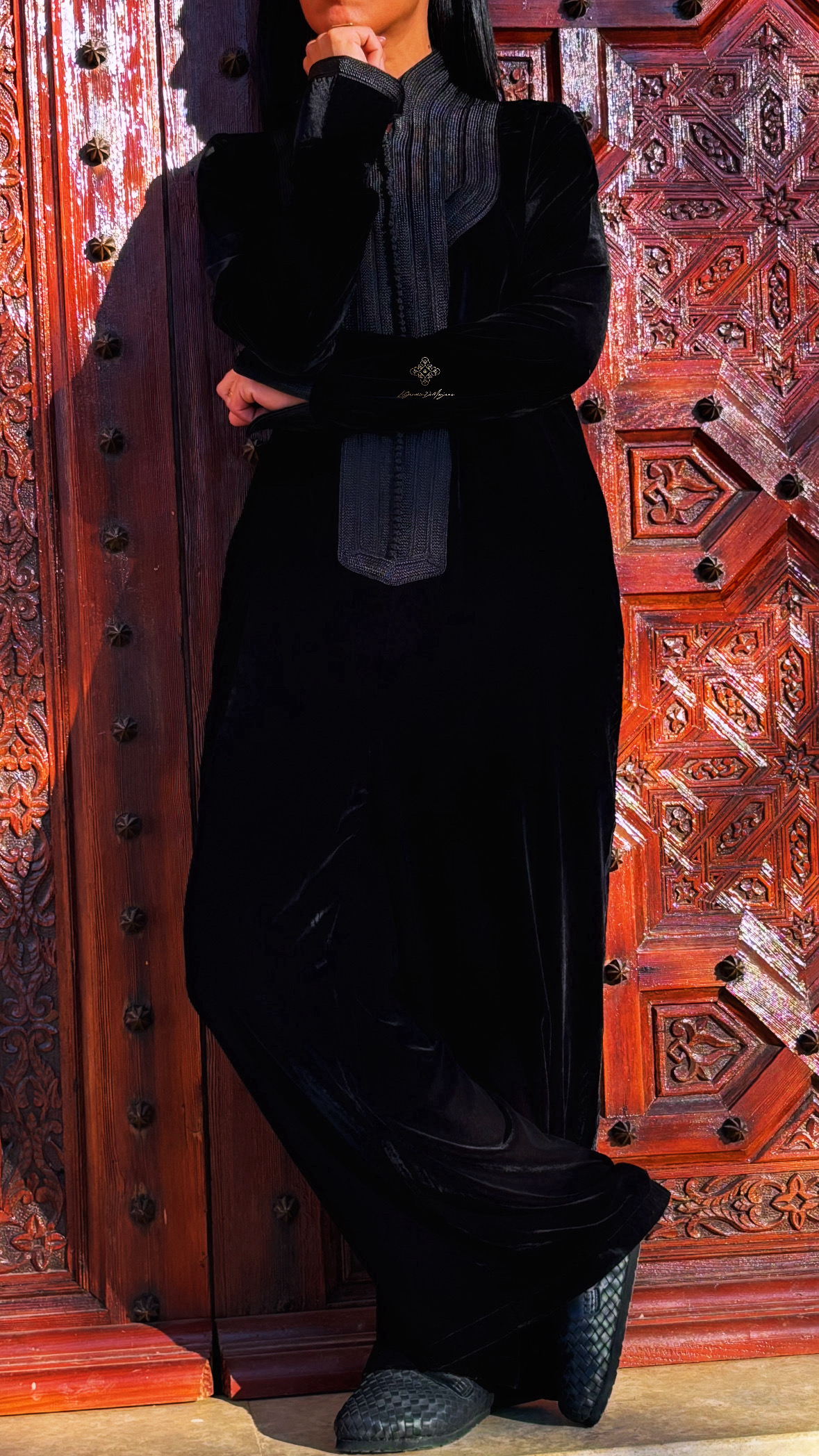 Des manches longues légèrement évasées sur les poignées avec une fente et une ligne de sfifa en finition.