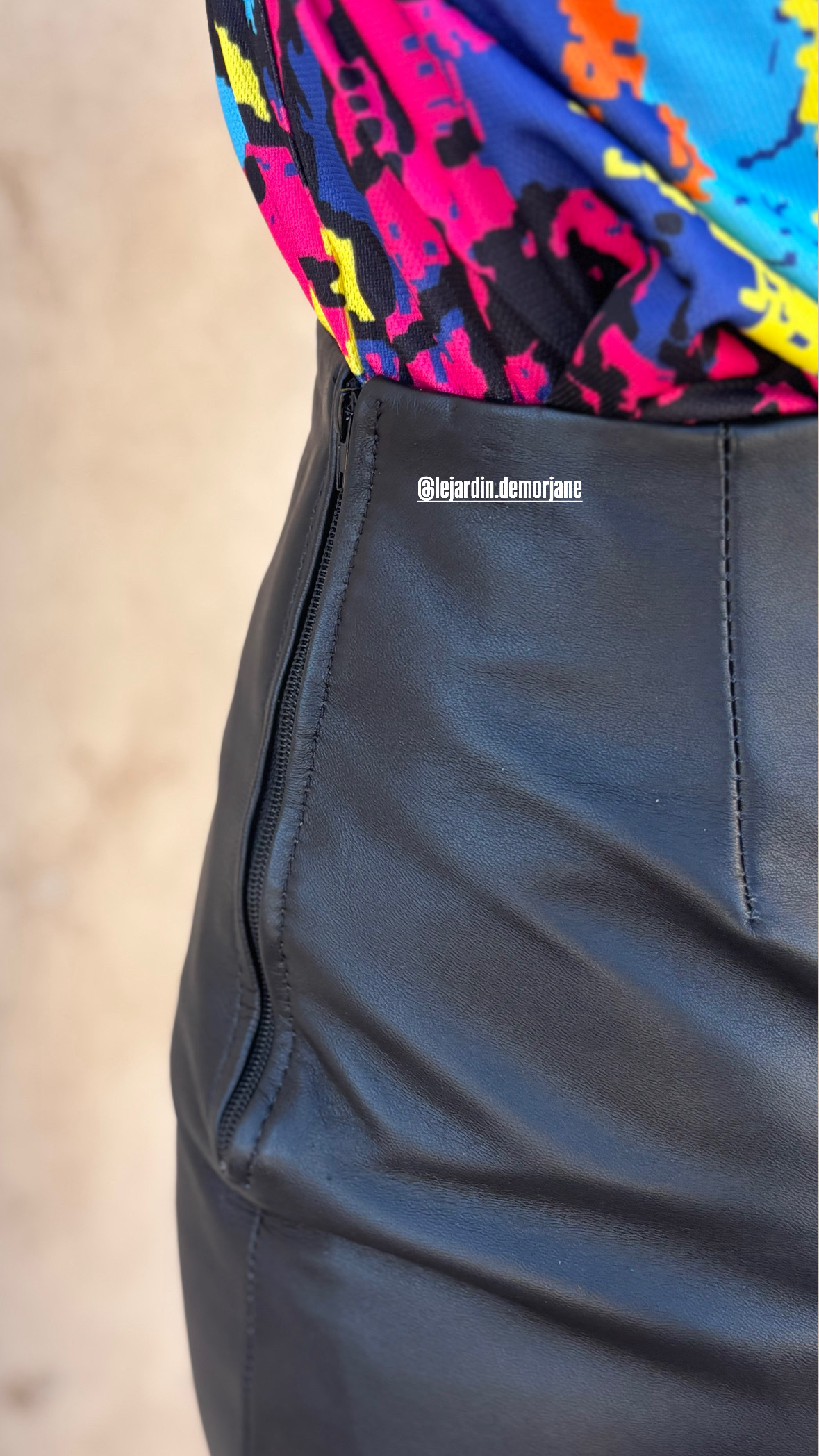 Pièce forte et intemporelle, cette jupe crayon en cuir d’agneau sublime la silhouette tout en affirmant un style unique.