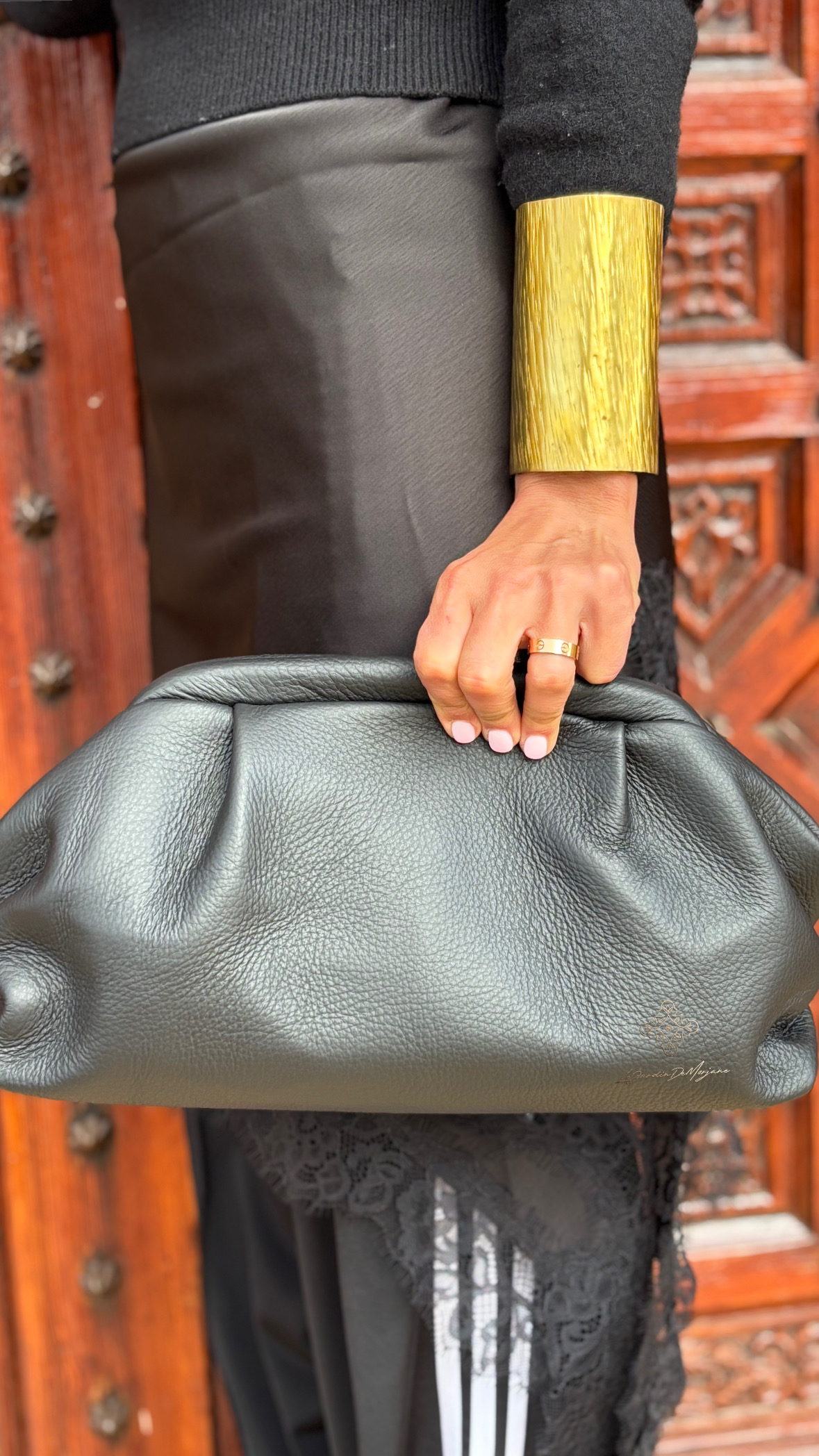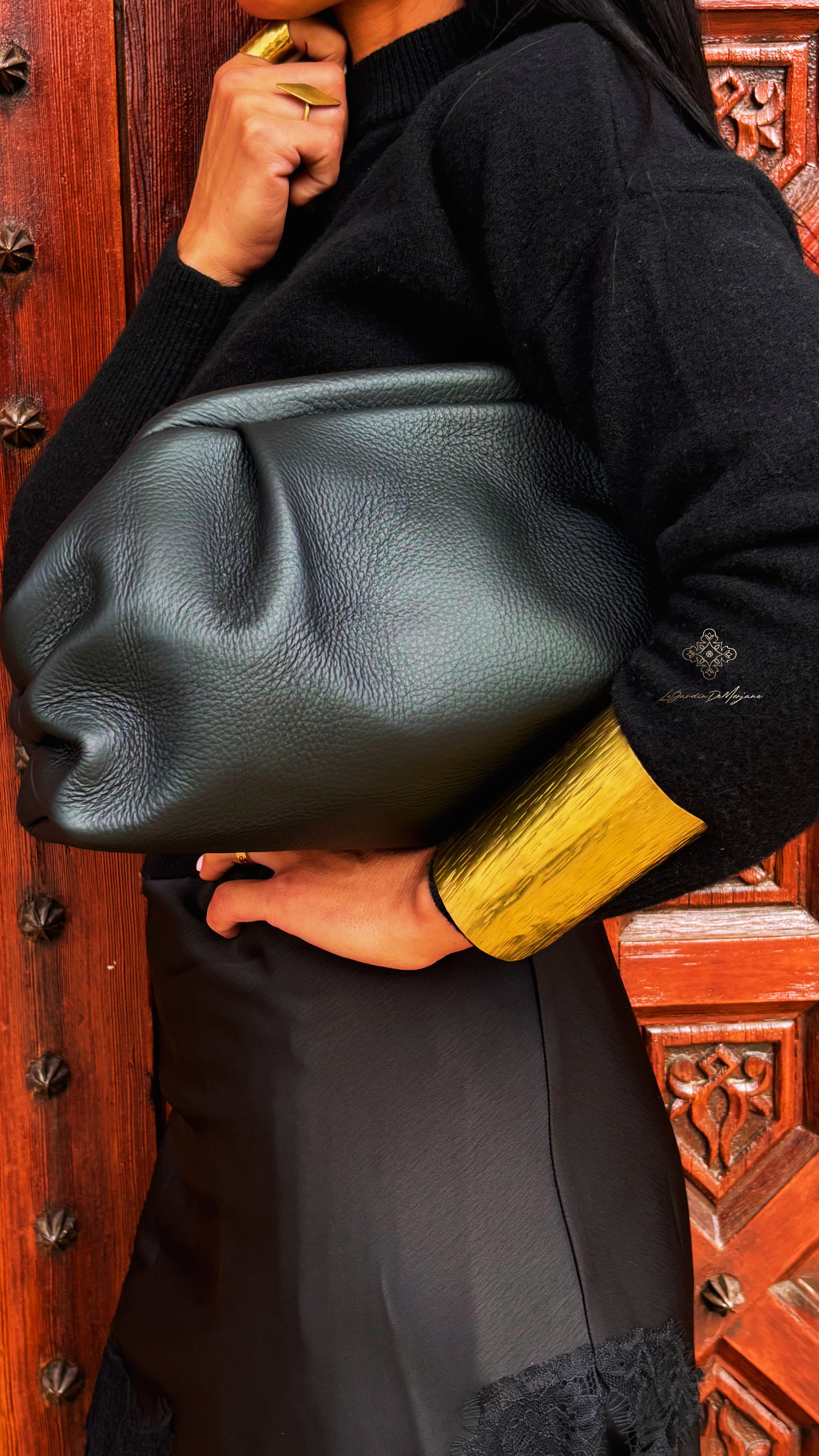 • Fermoir : mécanisme en aluminium recouvert de cuir d’inspiration vintage