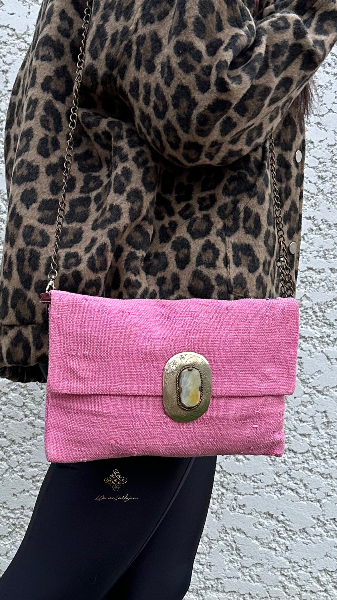 Pochette Berbère Rose et boucle ovale Blanche et Argentée